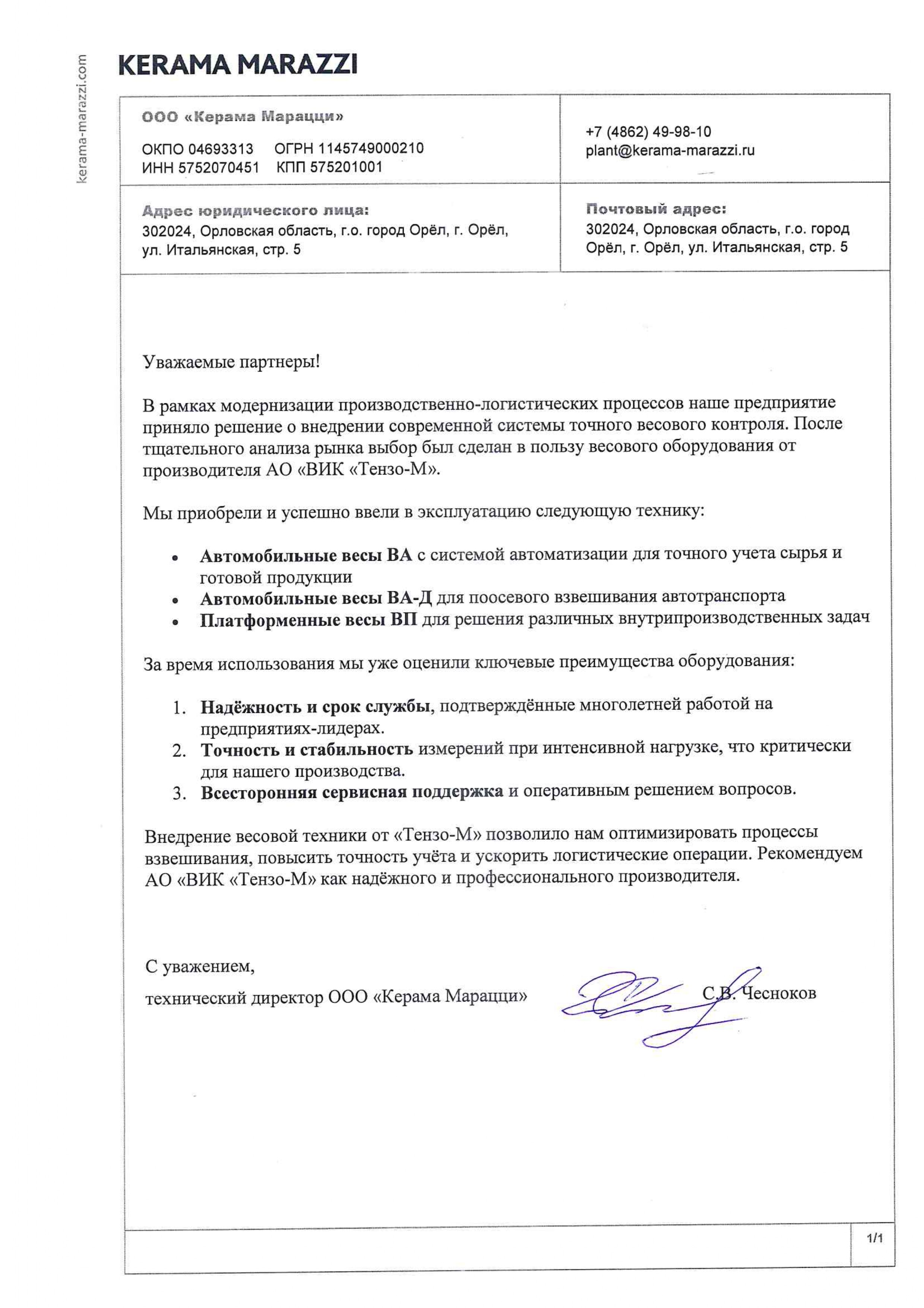 Генеральный директор АО ВИК «Тензо-М», кандидат технических наук, Сенянский М.В.