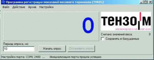 Для записи сигнала с весовых терминалов. В пакете программы предлагаются два модуля: ПО TVRegistr – для записи медленных процессов и ПО TVReg – для записи быстроизменяющихся процессов. ПО будет полезно в целях проведения исследовательских работ – при анализе разрывных процессов, оценке ударных нагрузок и других динамических процессов. Поставляется бесплатно
