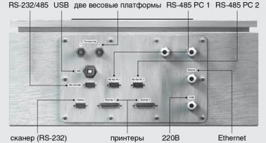 Большое количество входов/выходов на борту обеспечивает широкие возможности для подключения периферийного оборудования: сканера штрих-кодов, двух принтеров этикеток и др.
